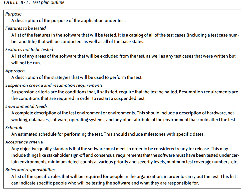 - A statement of work (SOW): describes all work products (specifications, test plans, code, defect reports, and any other product of work) that will be produced and a list of people who will do it.